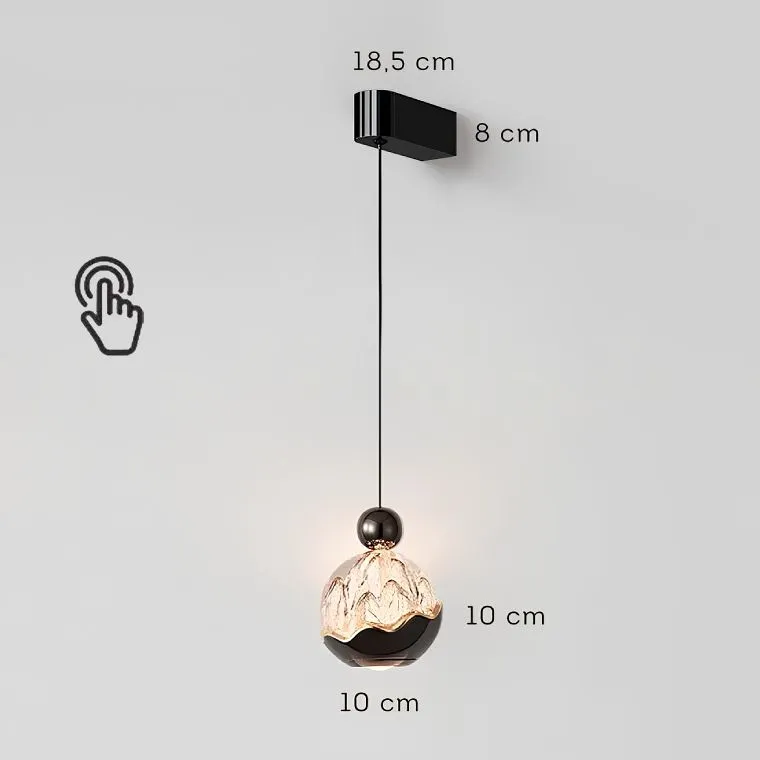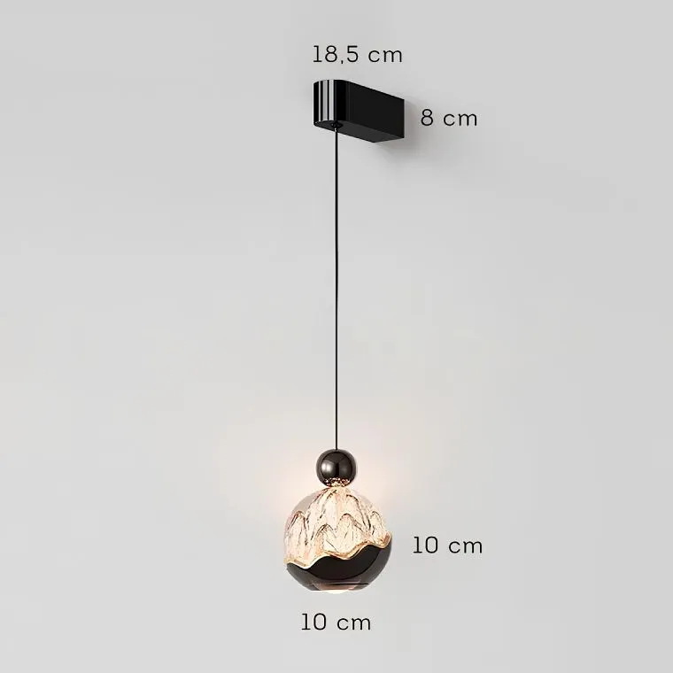 Серия светодиодных настенных светильников с подвесным шарообразным плафоном с рельефным изображением гор