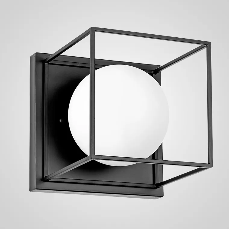 Металлический каркас в форме контурного куба и белый матовый плафон придают бра современный и элегантный вид. Цоколь E14 обеспечивает энергоэффективность и экономичность использования.