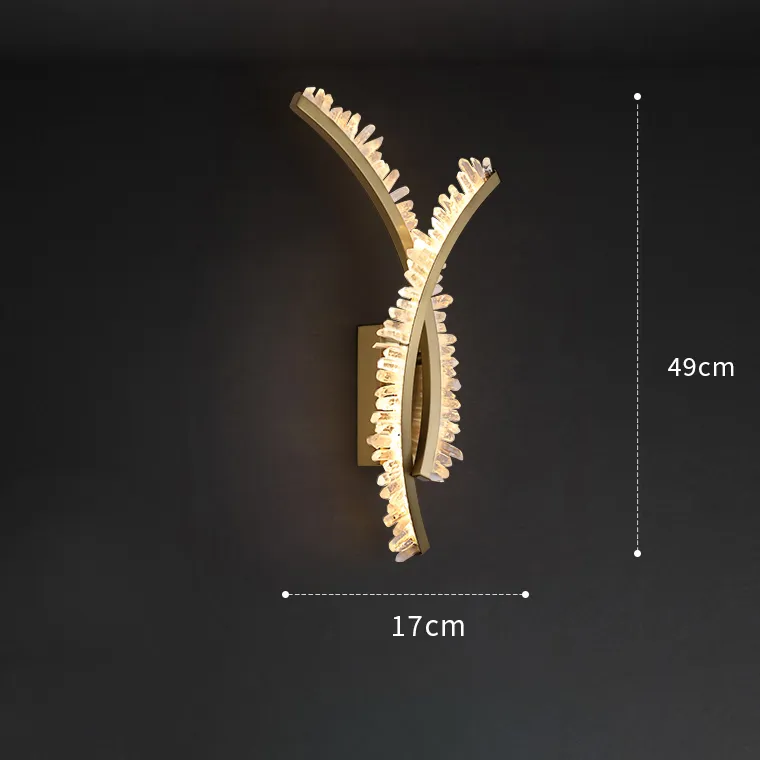 Светодиодный настенный светильник с изогнутым каркасом инкрустированный кристаллами хрусталя
