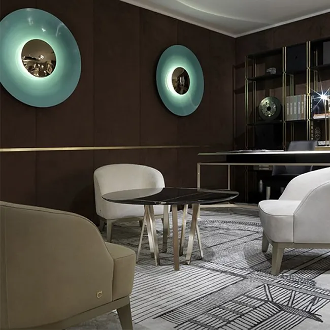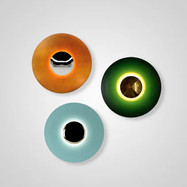 Серия настенных светильников в виде комбинации дисковидного рассеивателя и светодиодного кольца