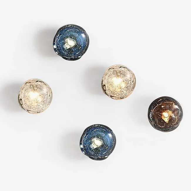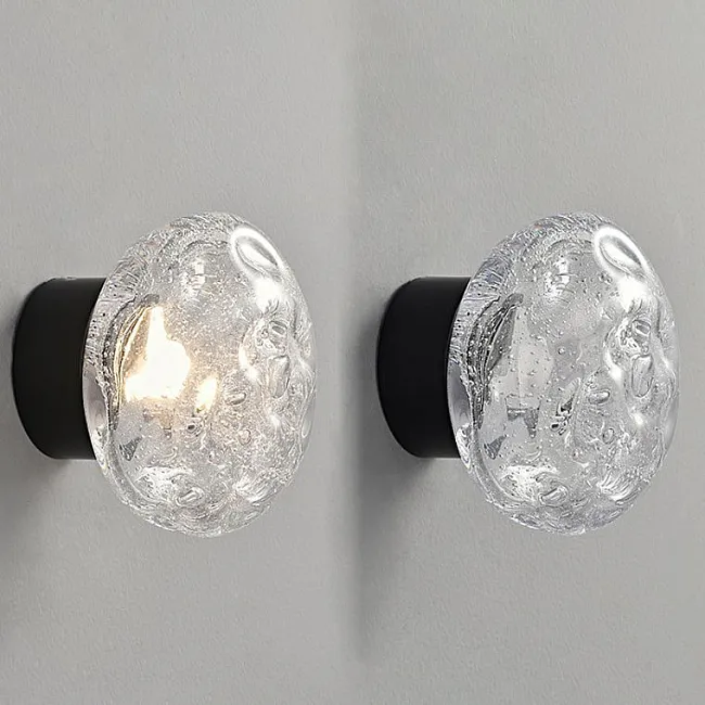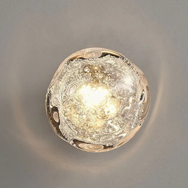 Хромированный корпус, создающий акценты на стенах, рассыпает свет через прозрачные рассеиватели, наполняя комнату мягким свечением. Будь то один, два или три округлых плафона, каждый из них словно парит в воздухе, создавая впечатление лёгкости и невесомости.