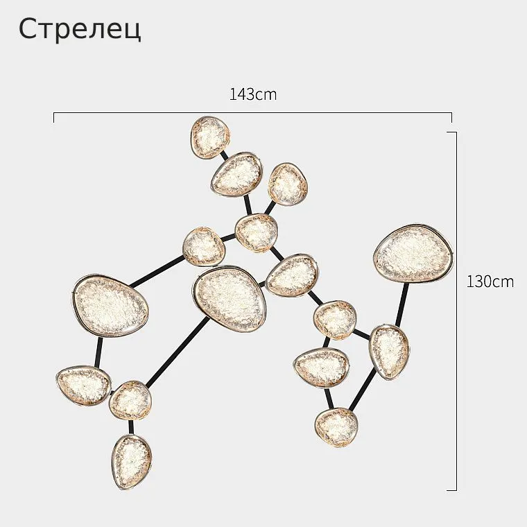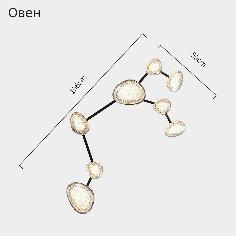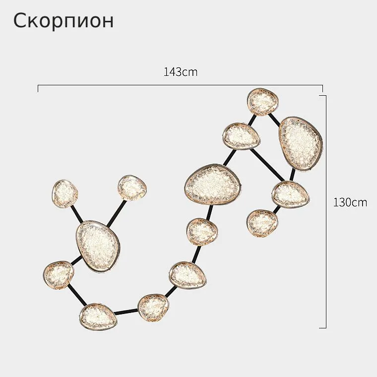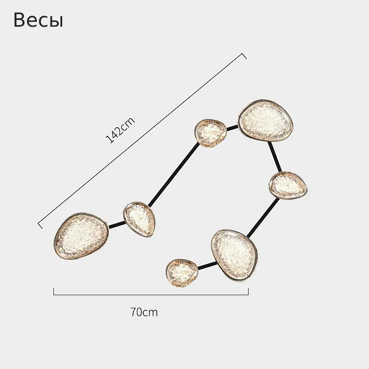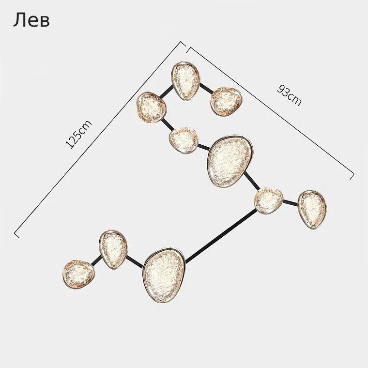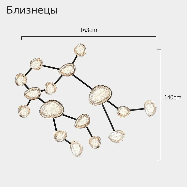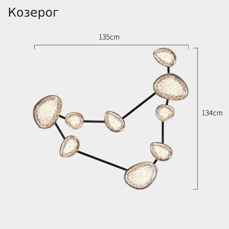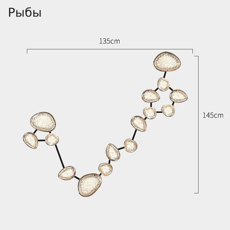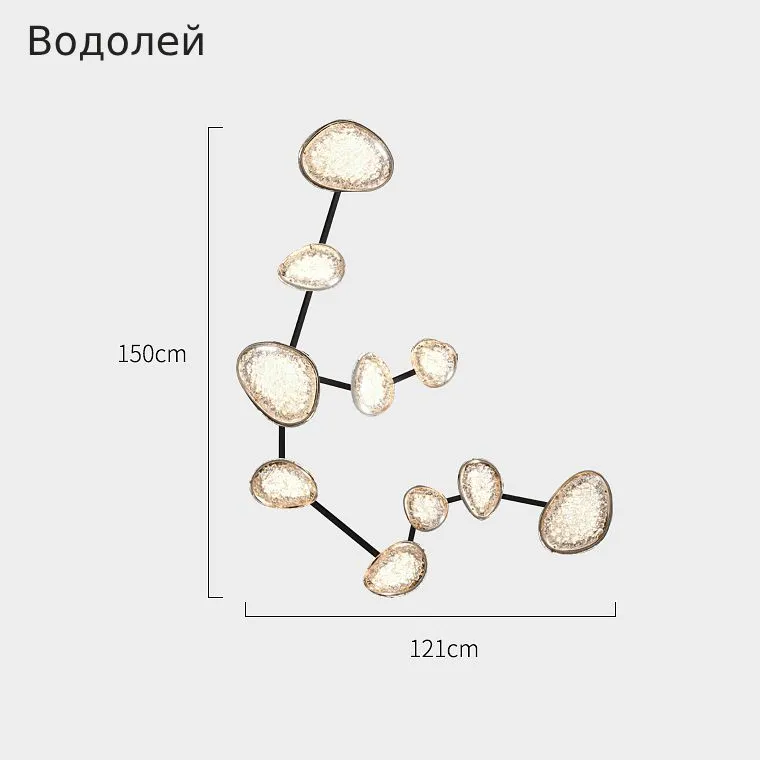 Серия настенных светодиодных инсталляций из светильников с каплевидным корпусом с эффектом льда, соединенных в виде созвездий
