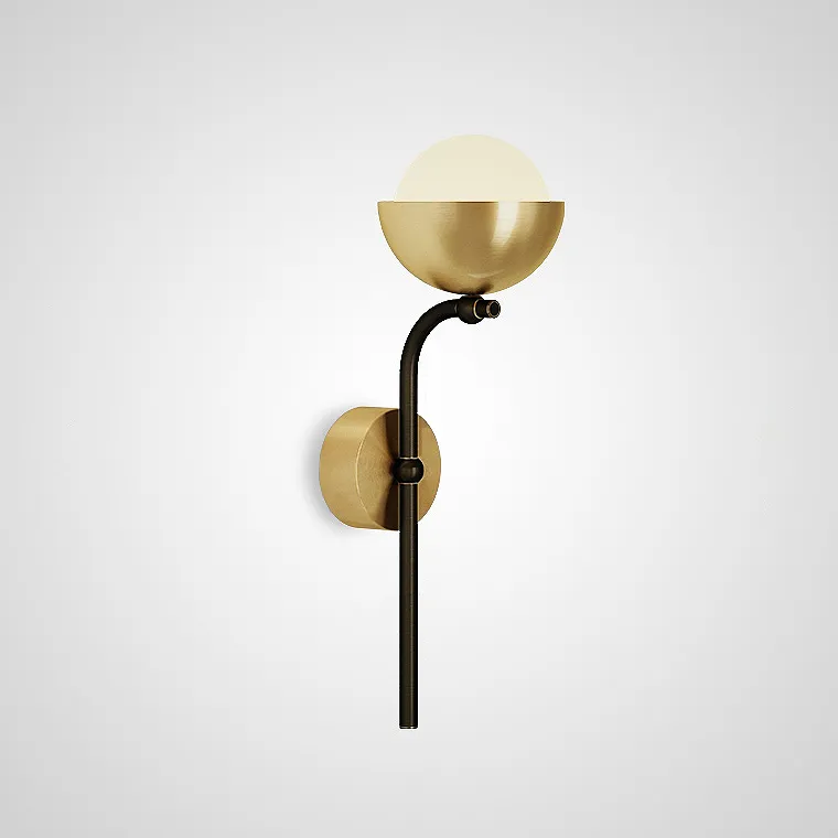 Настенный светильник с шарообразным плафоном и металлическом абажуром в форме полусферы