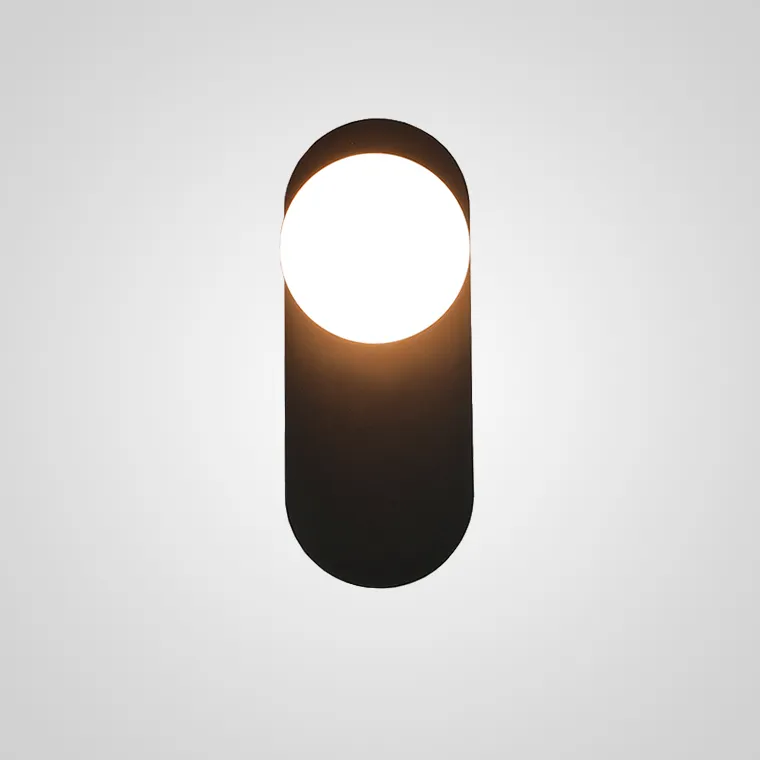 Бра с шарообразным стеклянным плафоном на корпусе в форме овальной пластины черного или золотого оттенка