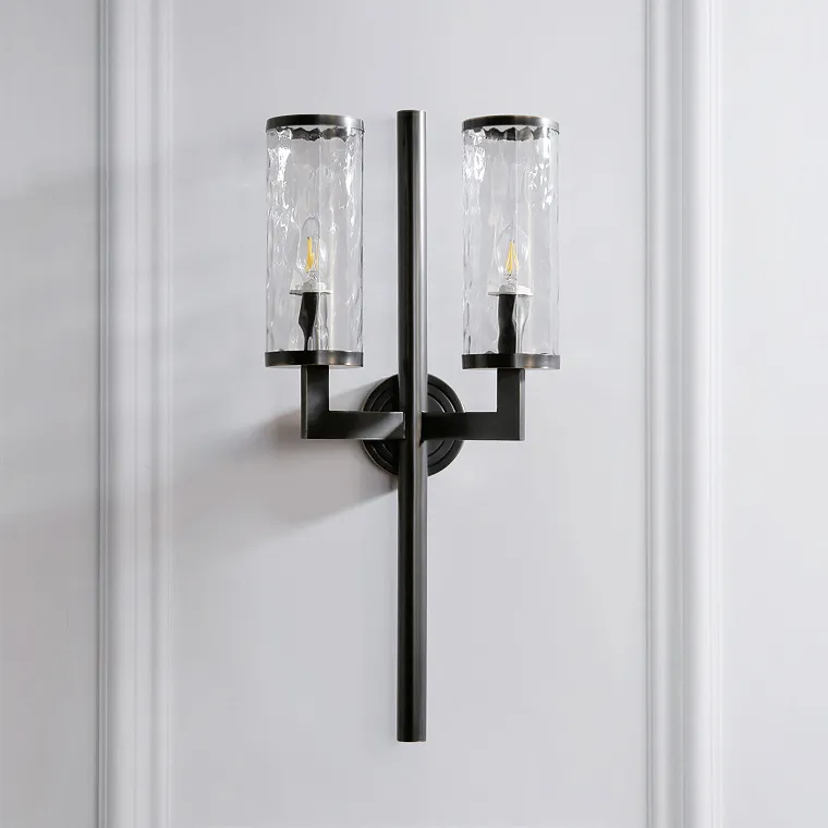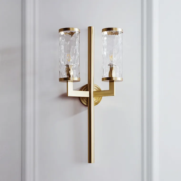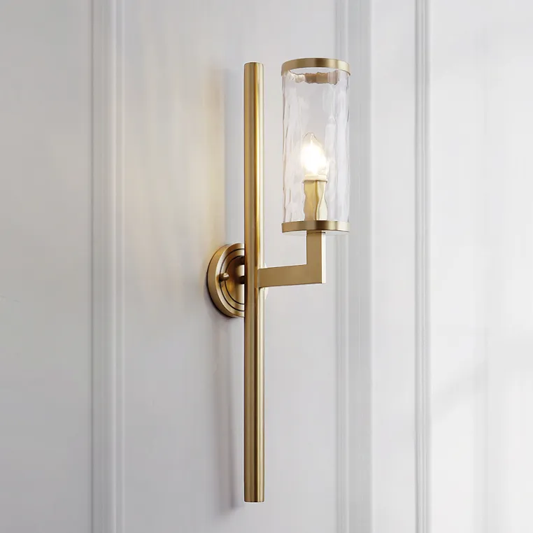 Форма плафона FEAT WALL выполнена в виде цилиндра, а материалом его изготовления является стекло. Прозрачность плафона придает светильнику легкость и воздушность, наполняя помещение мягким светом. Цвет каркаса – латунь, что гармонично сочетается с прозрачным плафоном и создает ощущение изысканности и роскоши.