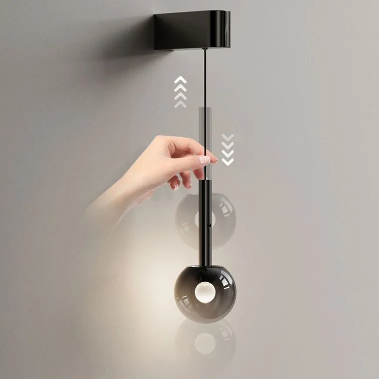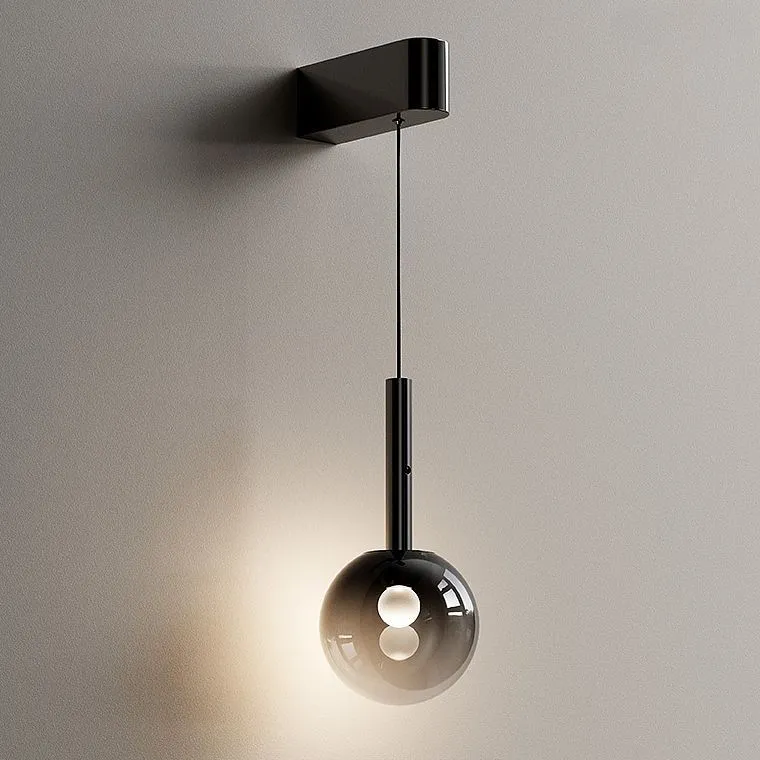 Светодиодный настенный светильник с шарообразным плафоном из дымчатого стекла на регулируемом подвесе