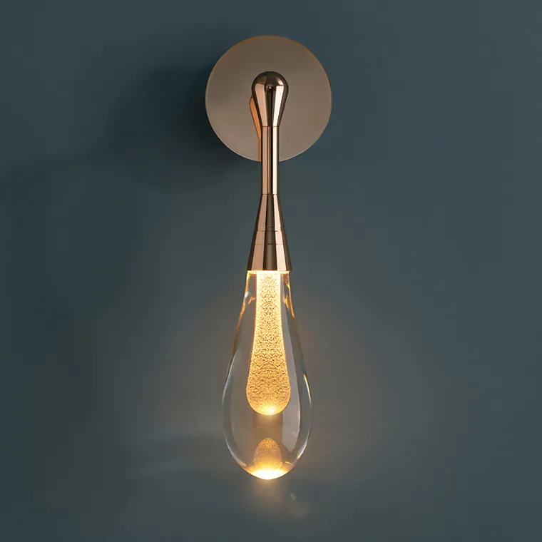 Изящный настенный светильник представлен в форме капли. Плафон прозрачного цвета украшен мелкими золотыми вкраплениями, что придает бра по-настоящему дизайнерский вид. Металлический каркас светильника выполнен в цвете золота, крепится к стене. Лампу можно установить в спальне, гостинной, а также в залах ресторанов и кафе. Бра FIAL-WALL дает теплый свет — это универсальное решение для создания уюта в любом помещении.