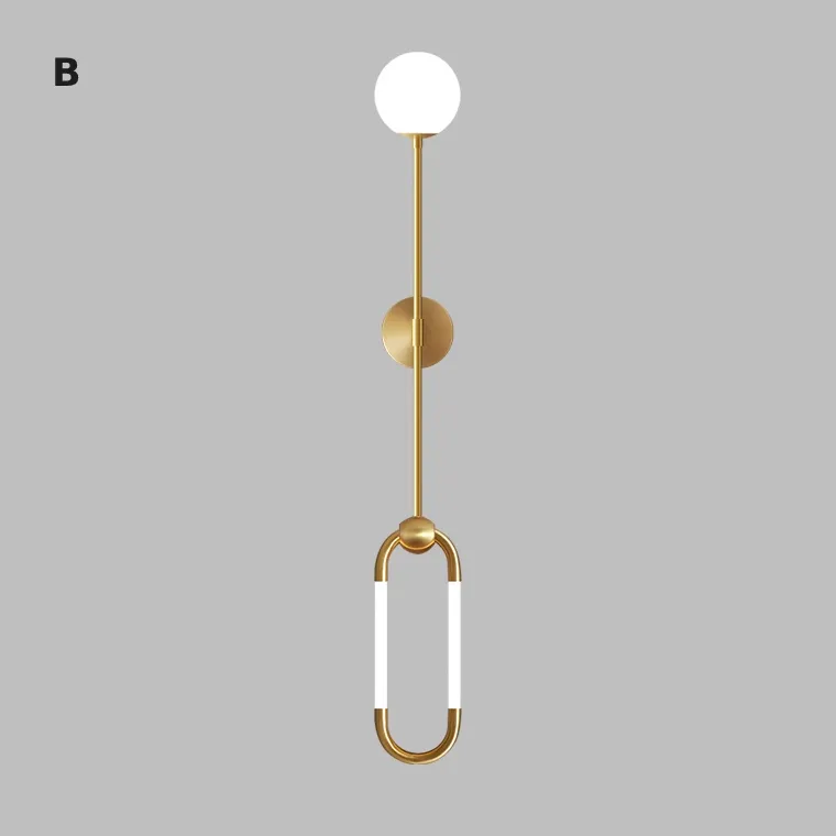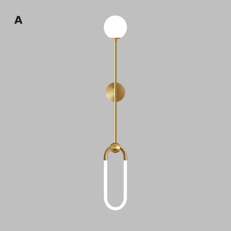 Серия настенных светильников с эллиптическим световым элементом и шарообразным плафоном на вертикальной стойке