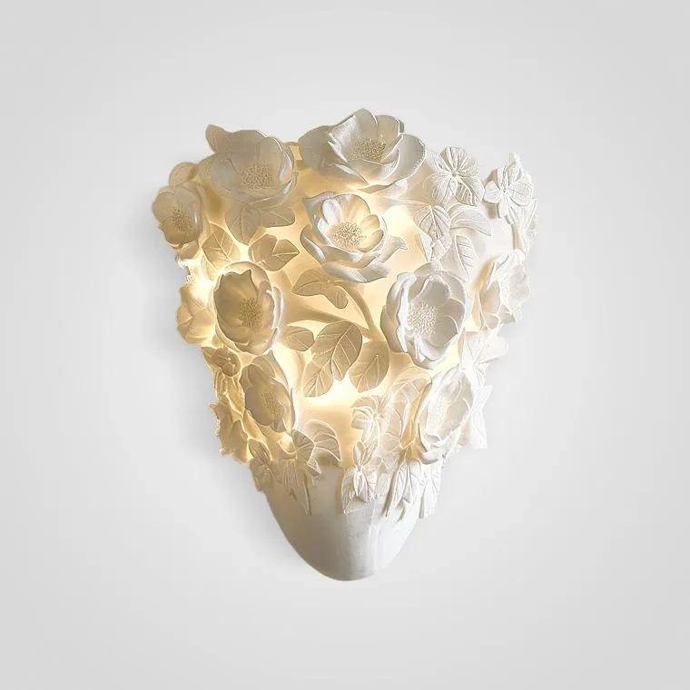 Нежная композиция из объемных цветов и листьев расцветает прямо на вашей стене, словно гипсовая лепнина, созданная руками искусного мастера. Белый цвет светильника, словно чистый холст, настраивает на гармонию и умиротворение.