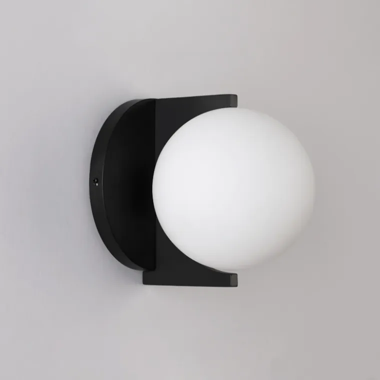 Настенный светильник FRIDA WALL с белым шарообразным стеклянным плафоном на угловом металлическом кронштейне станет ярким акцентом в вашем интерьере. Благодаря круглому креплению, светильник можно легко и надежно установить на стене.