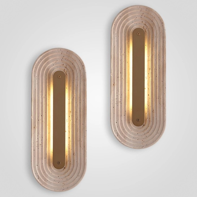 Настенный светильник с деревянным ребристым корпусом в форме овала