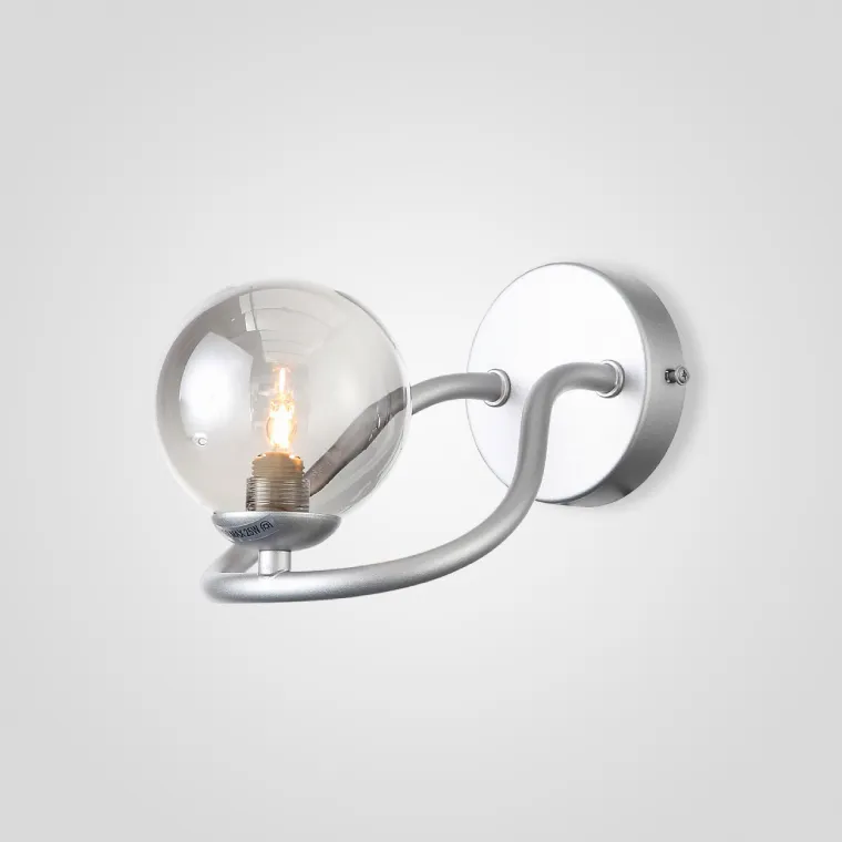 Серия настенных светильников с шарообразными стеклянными плафонами на замкнутых округлых рожках