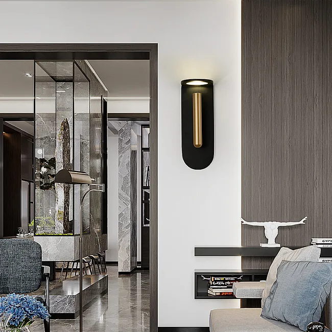 Настенный светодиодный светильник с цилиндрическим плафоном на прямоугольном основании с контурной подсветкой
