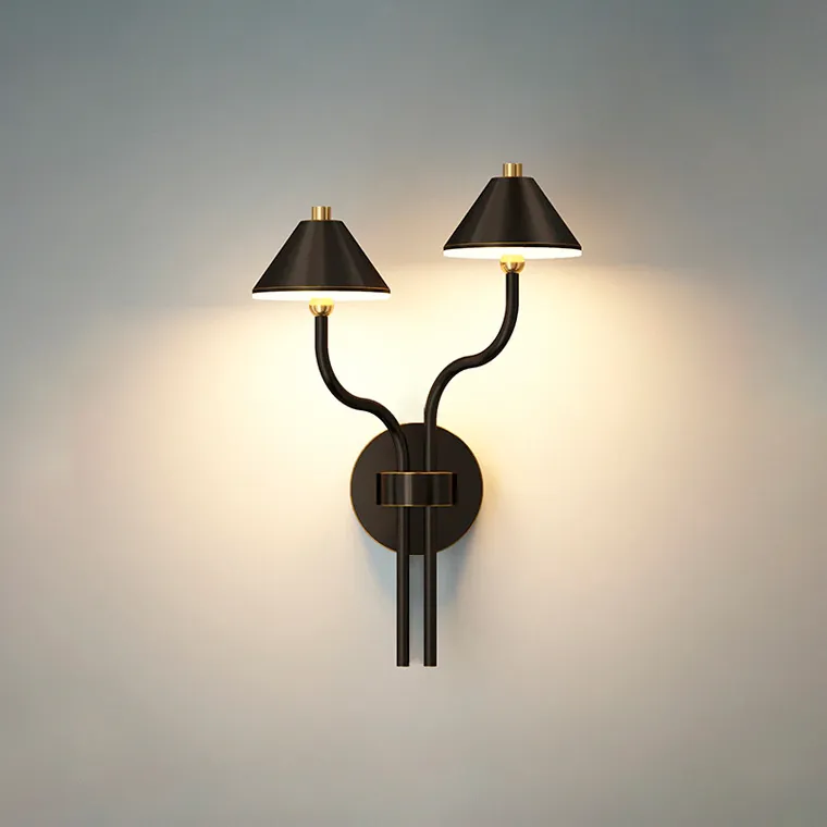 Серия настенных светильников с коническими плафонами на изогнутых рожках