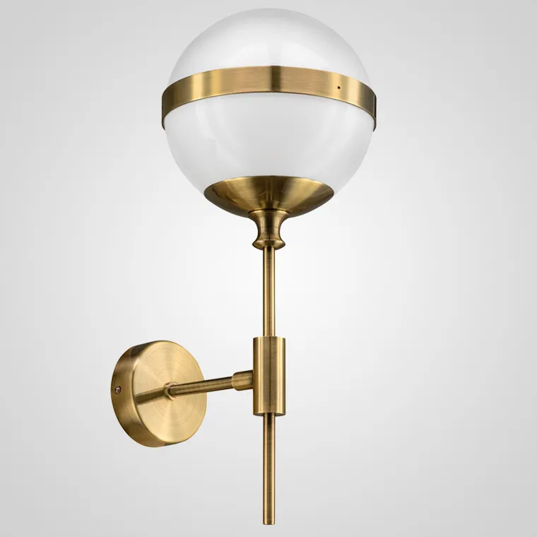 Настенный светильник с шарообразным стеклянным плафоном с металлическим обручем