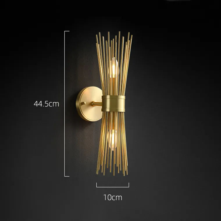 Настенный светильник с латунным абажуром в виде пучка металлических прутьев