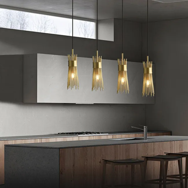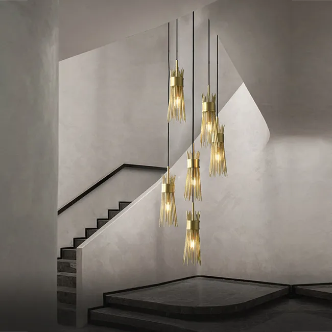 Настенный светильник с латунным абажуром в виде пучка металлических прутьев