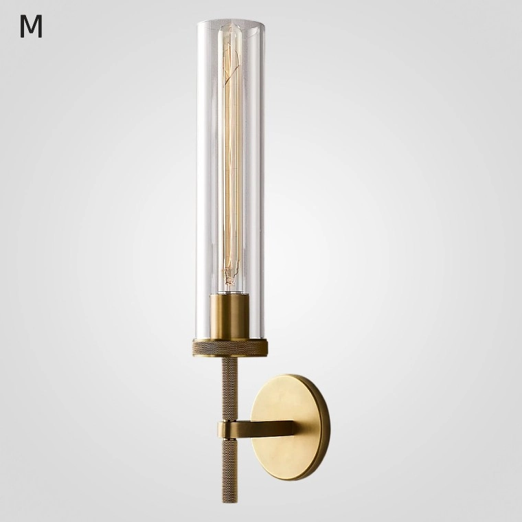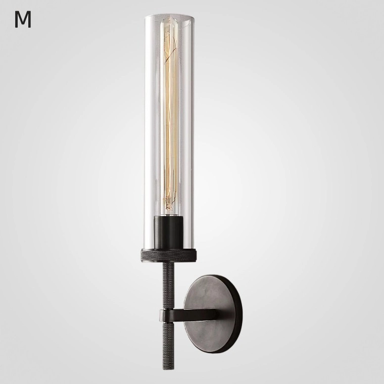 Серия настенных светильников со стеклянным цилиндрическим плафоном на кронштейне с круглым креплением