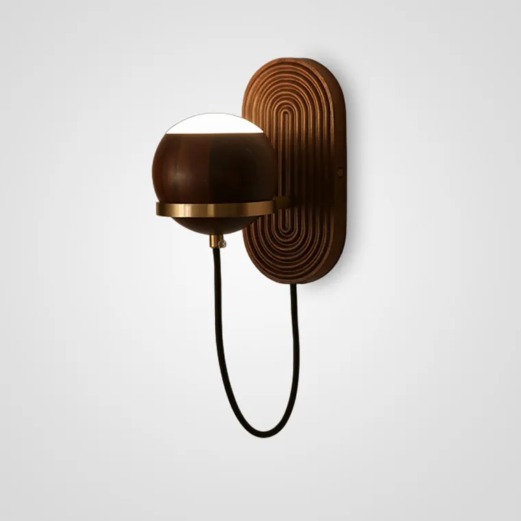 Настенный светильник с шарообразным матовым плафоном и деревянной отделкой