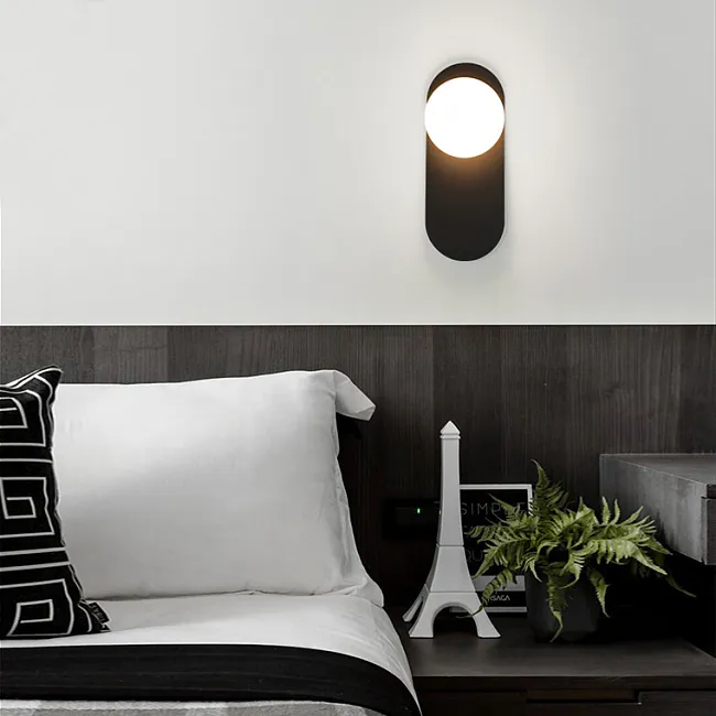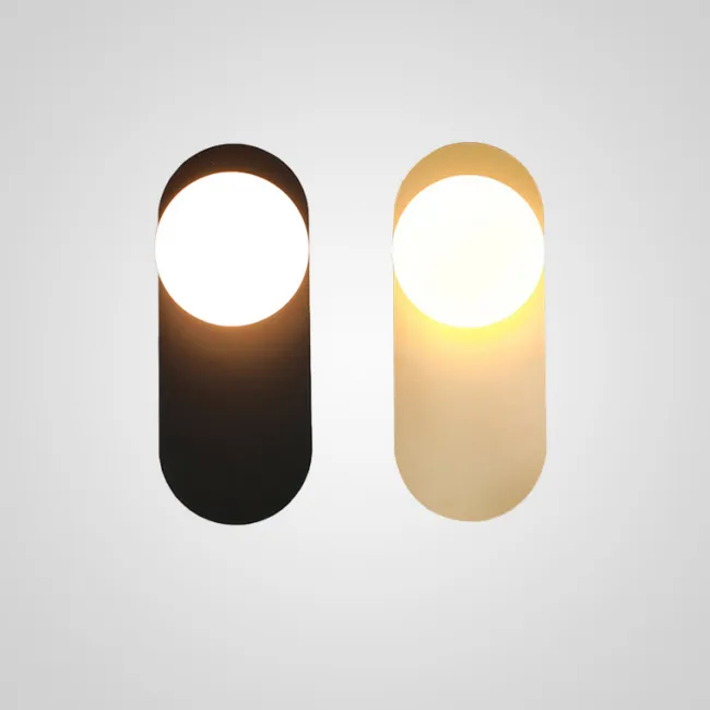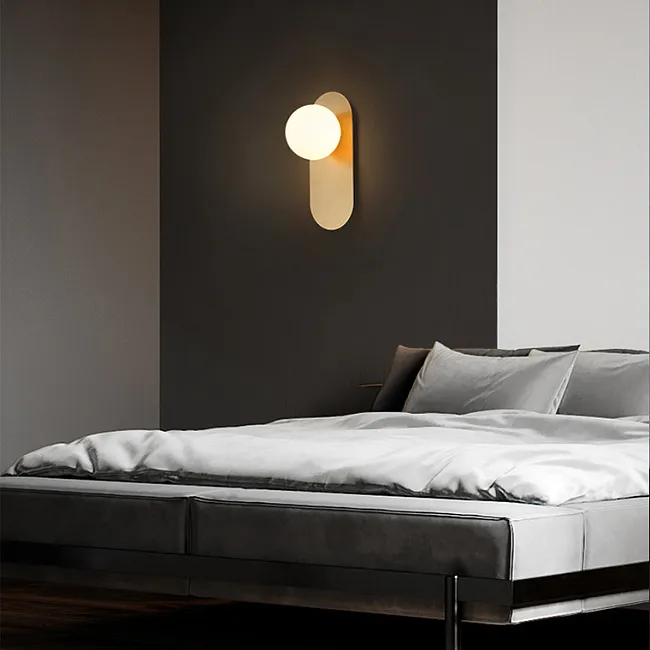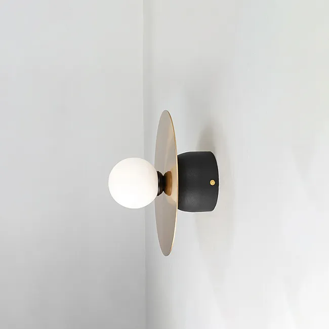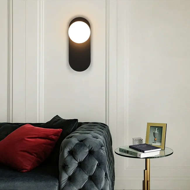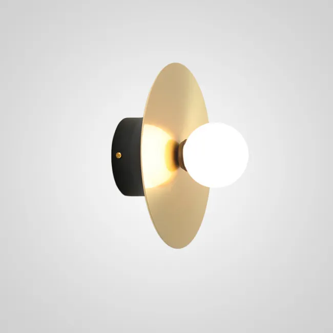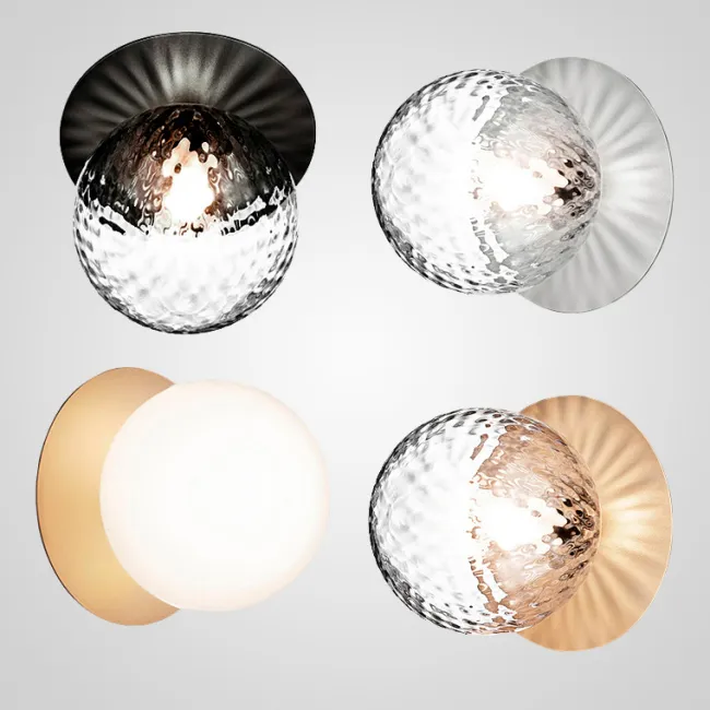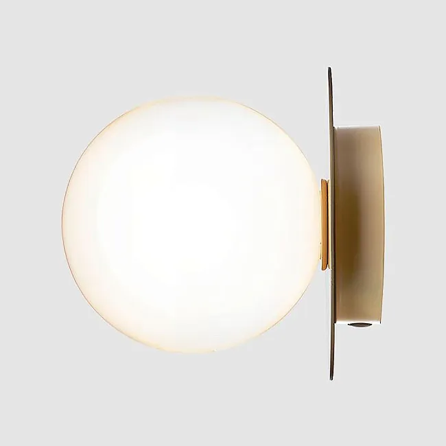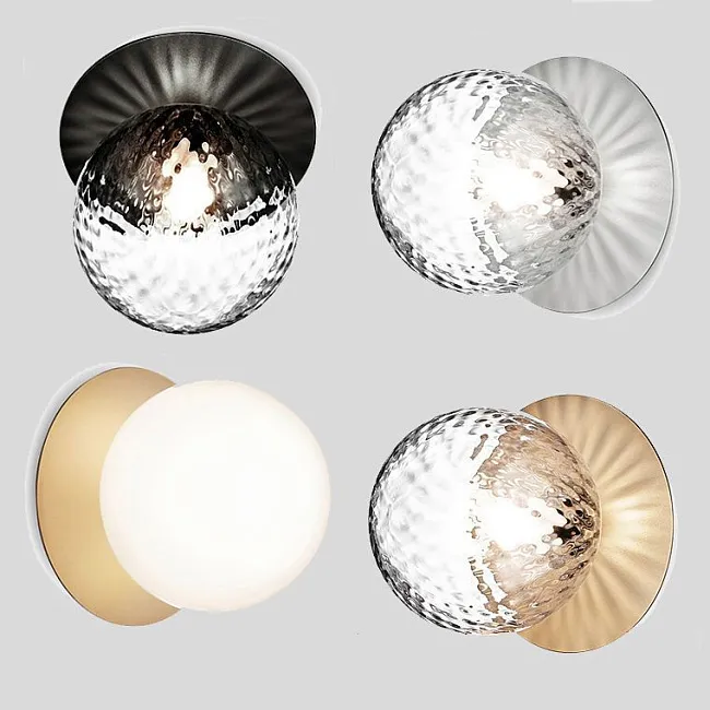 Серия настенных светильников с шарообразным матовым плафоном из стекла на дисковидном металлическом основании
