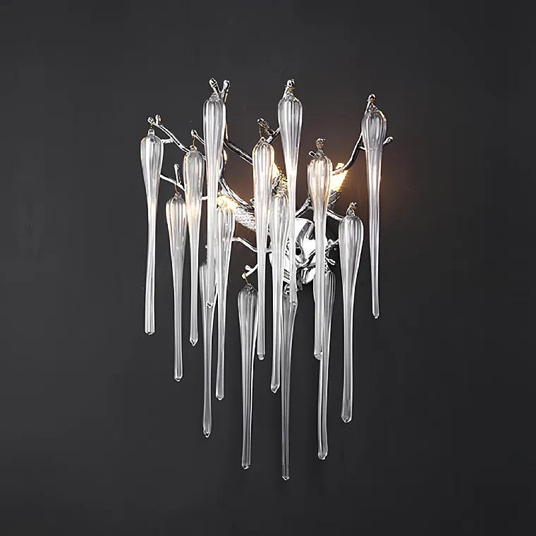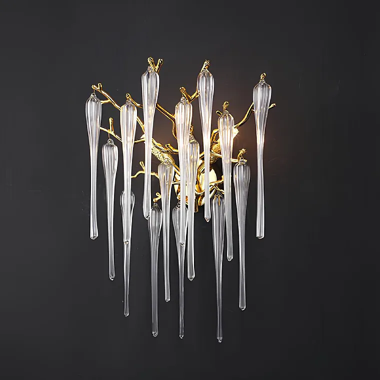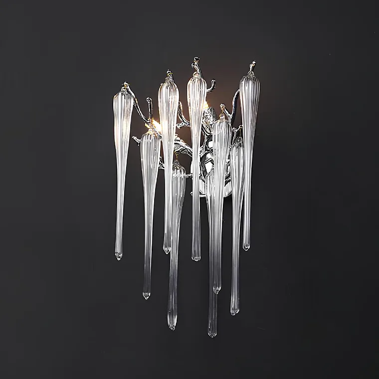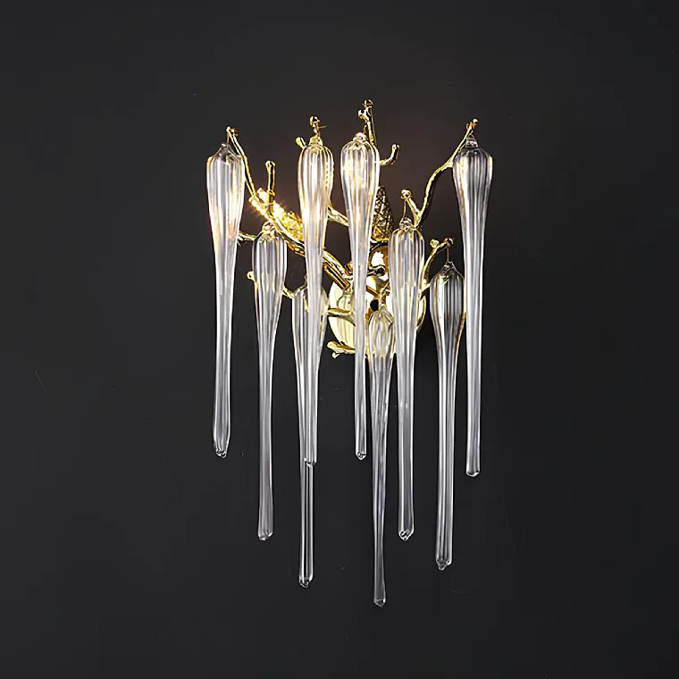 Серия настенных светильников со стеклянными подвесками в виде сосулек на ветвистом каркасе