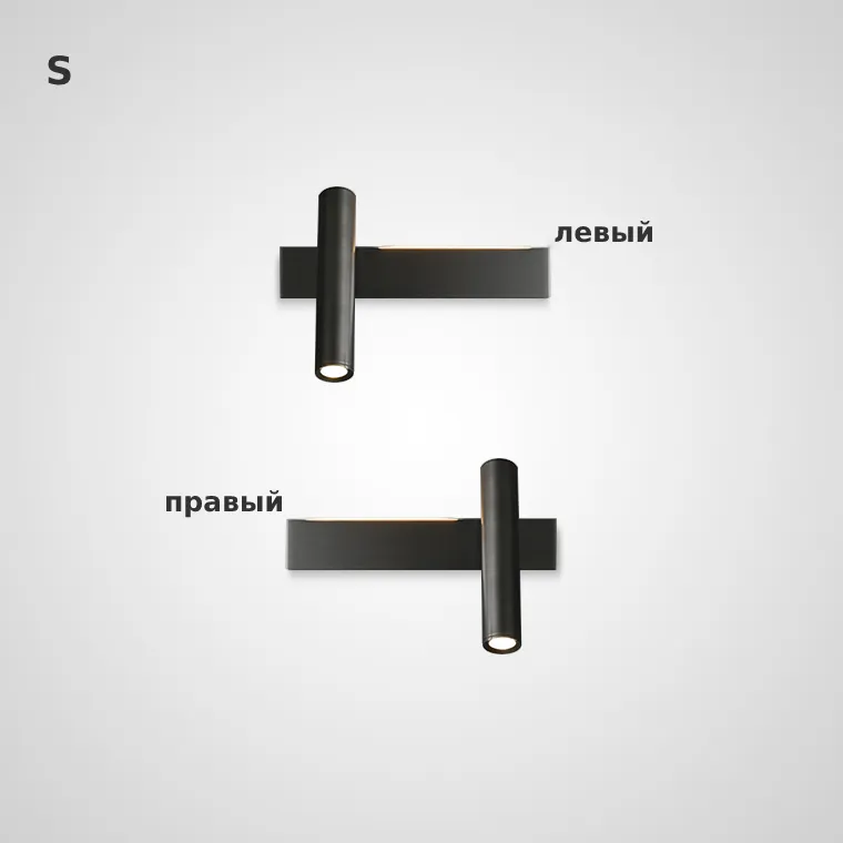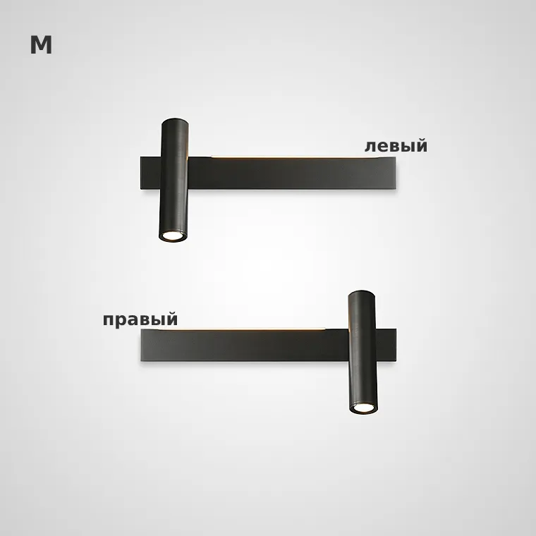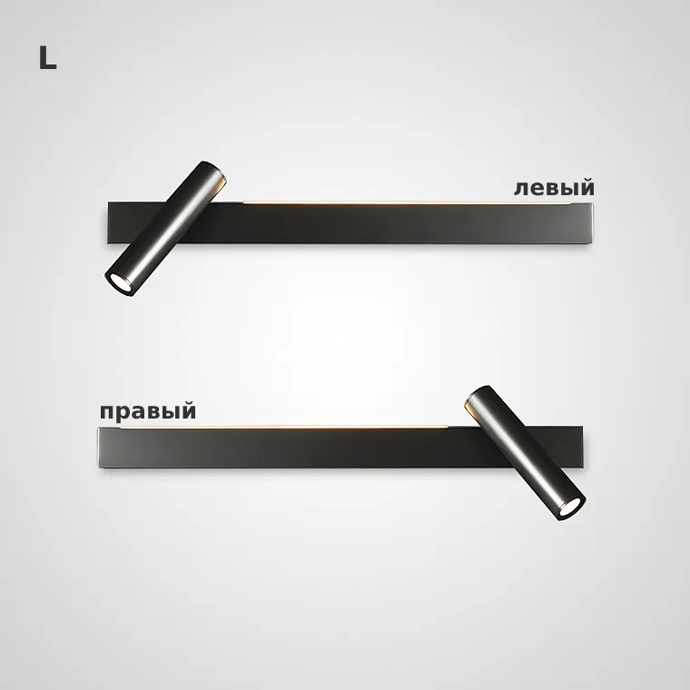 Серия парных светодиодных бра с поворотным цилиндрическим спотом на прямоугольном корпусе с подсветкой