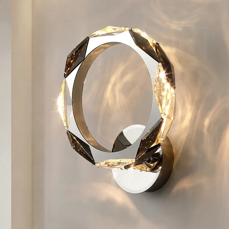 Настенный светодиодный светильник с ромбическими рассеивателями из хрусталя К9 на кольцевом корпусе