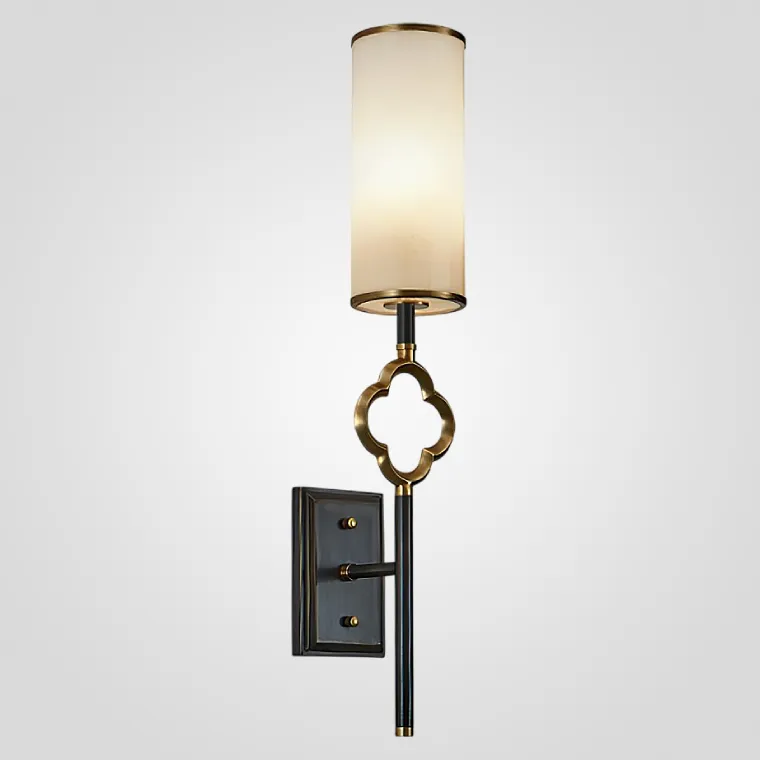 Настенный светильник со стеклянным цилиндрическим плафоном на рожке в азиатском стиле