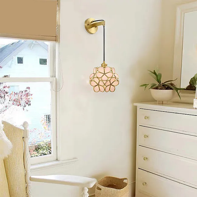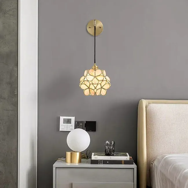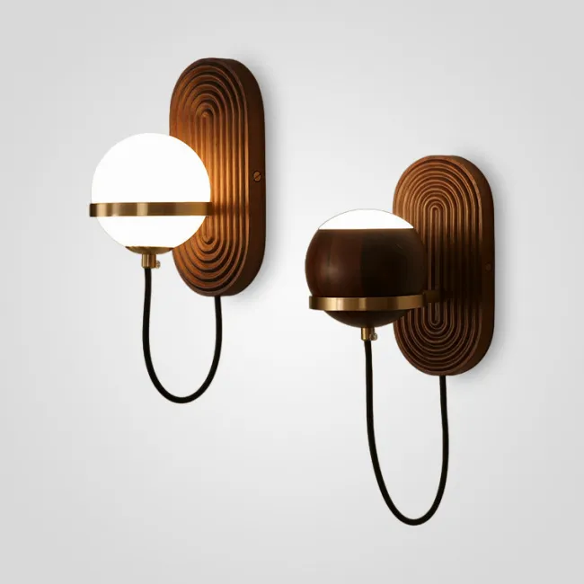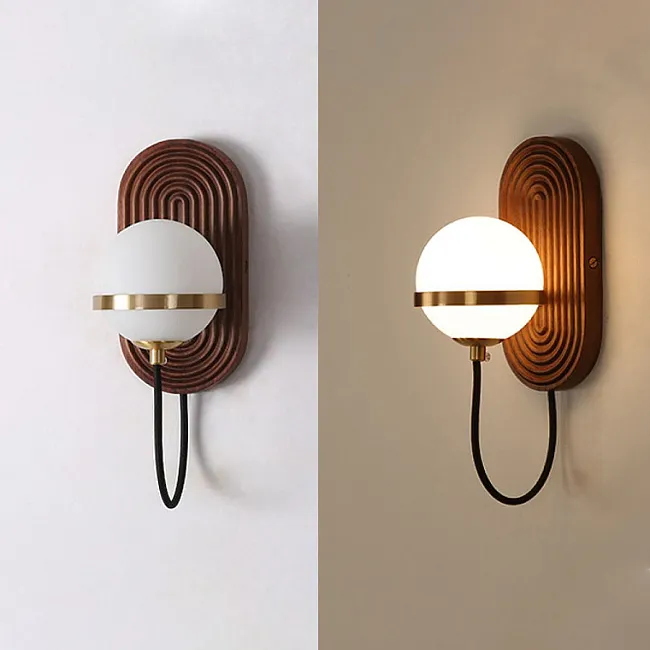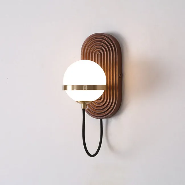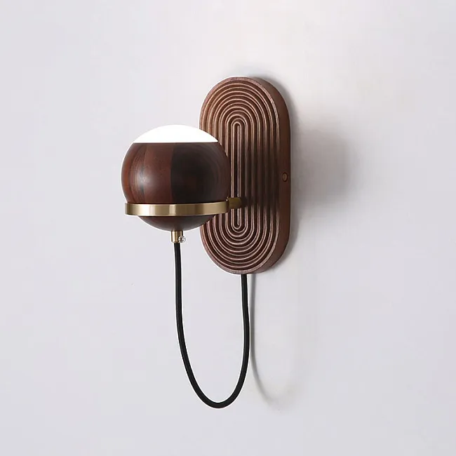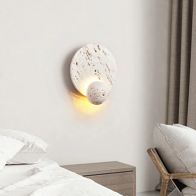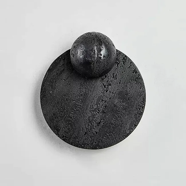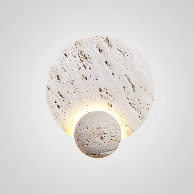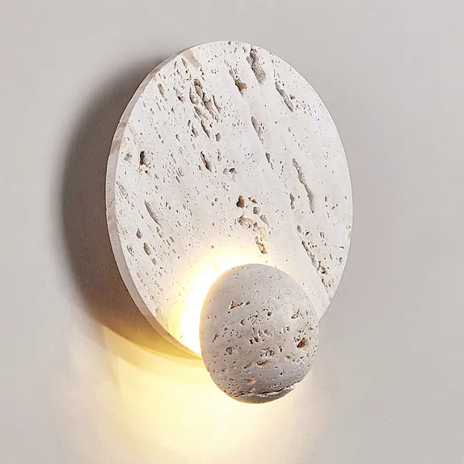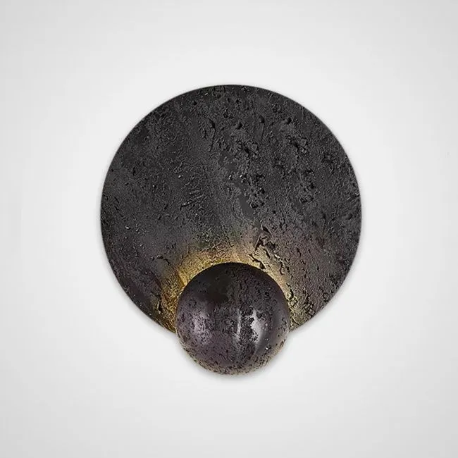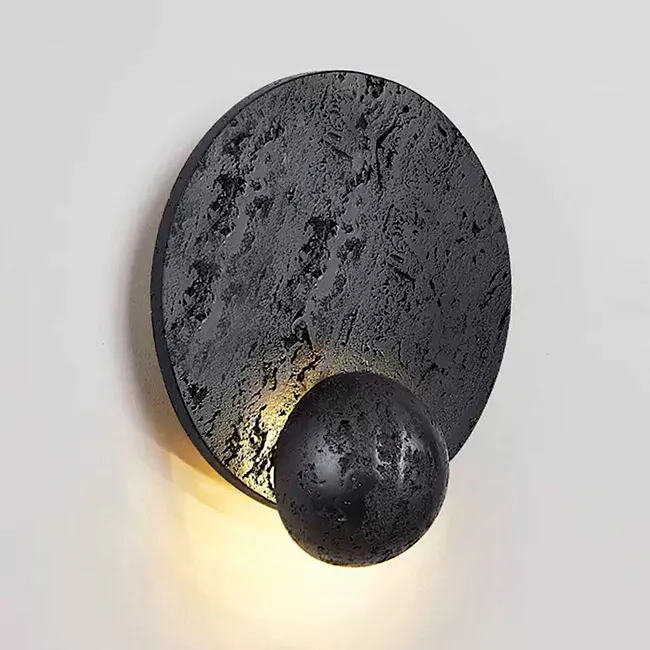 Настенный светодиодный светильник с плоским дисковидным рассеивателем с каменной текстурой и деревянным центром