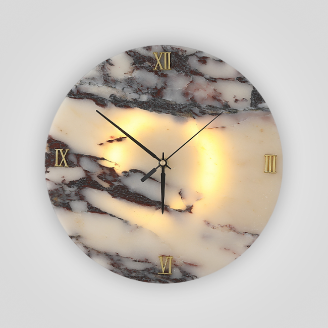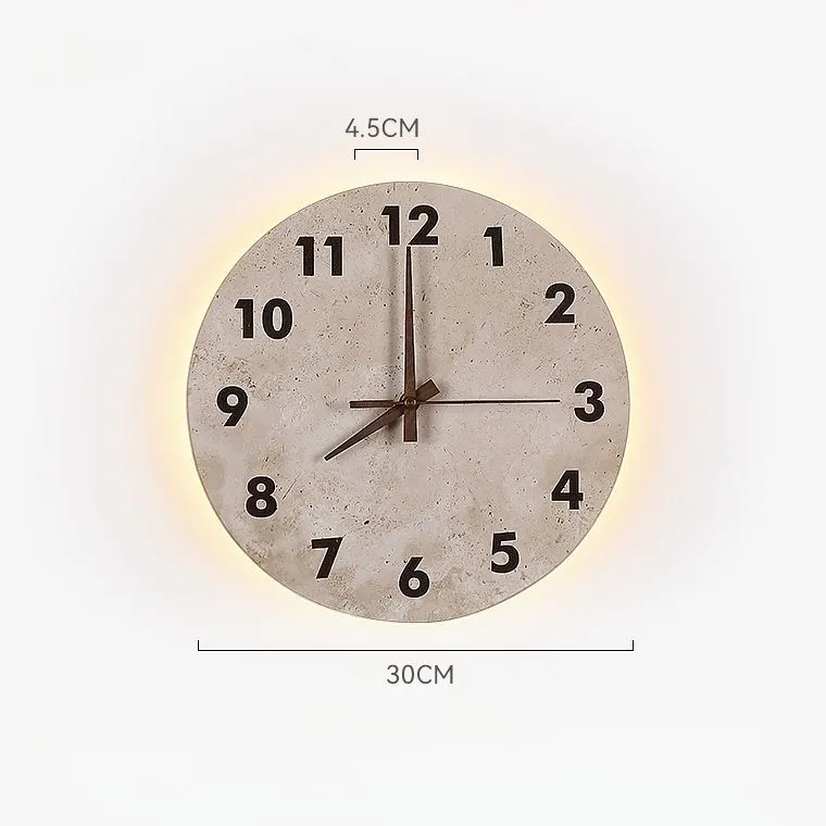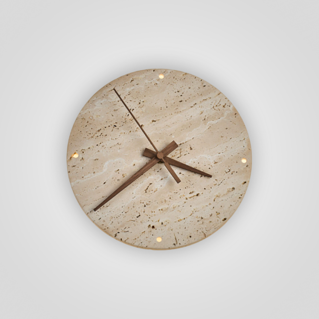 Настенный светильник с часами и дисковым корпусом из натурального травертина