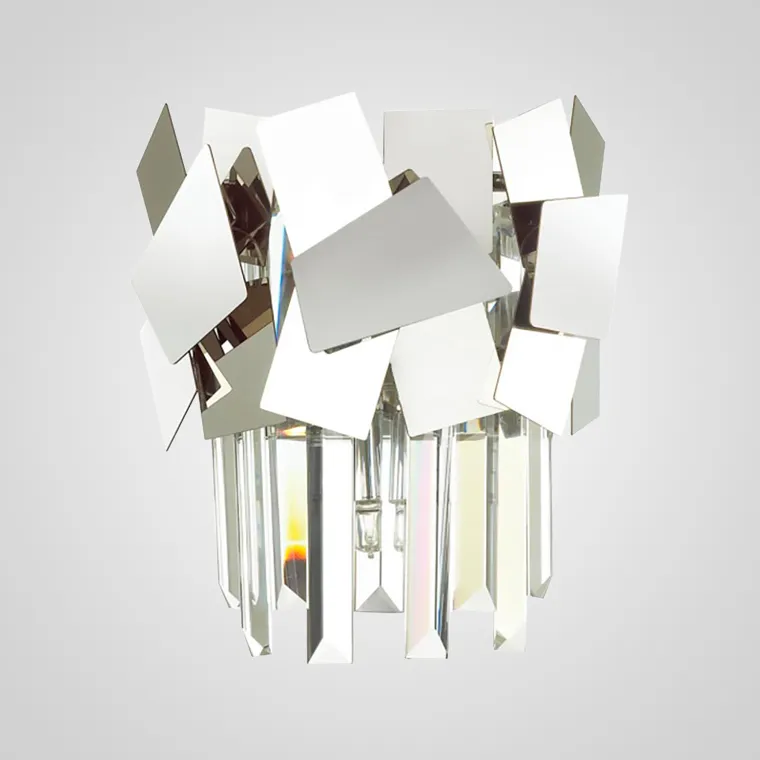 Бра KASAEN WALL в стиле Постмодерн с кольцевым каркасом зеркального полированного хрома и абажуром из комбинации хрустальных подвесов с отточенными гранями