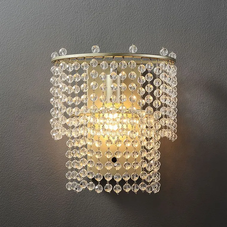 Настенный светильник LADY WALL с абажуром из подвесок с хрустальными бусинами представляет собой новую классическую модель освещения. Он имеет два слоя абажуров с подвесками, выполненными в виде цепочек, на которых нанизаны элегантные хрустальные бусины.