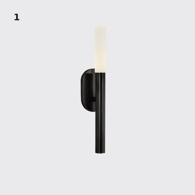 Серия настенных светильников с матовым цилиндрическим рассеивателем на вертикальном рожке