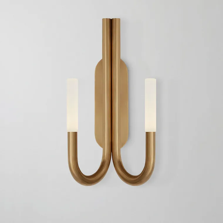 Серия настенных светильников в классическом стиле с двумя матовыми рассеивателями на изогнутых рожках