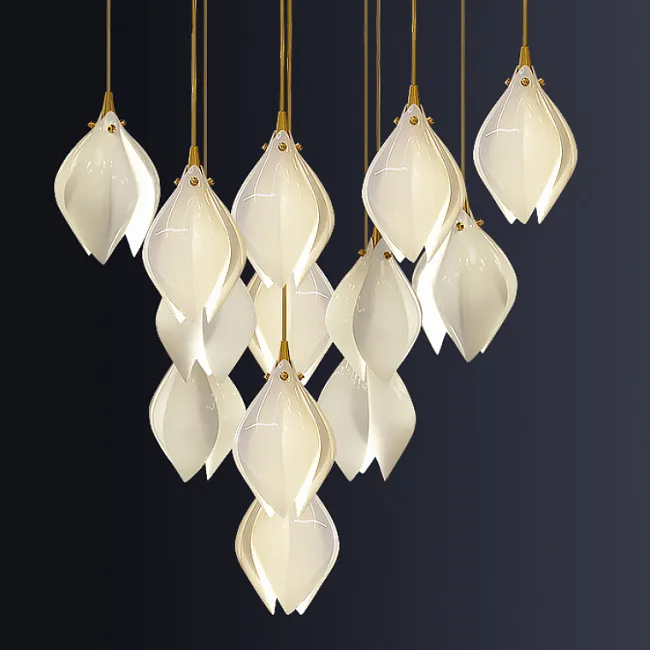 Дизайнерский настенный светильник с подвесным плафоном из нефритового фарфора в форме белого бутона