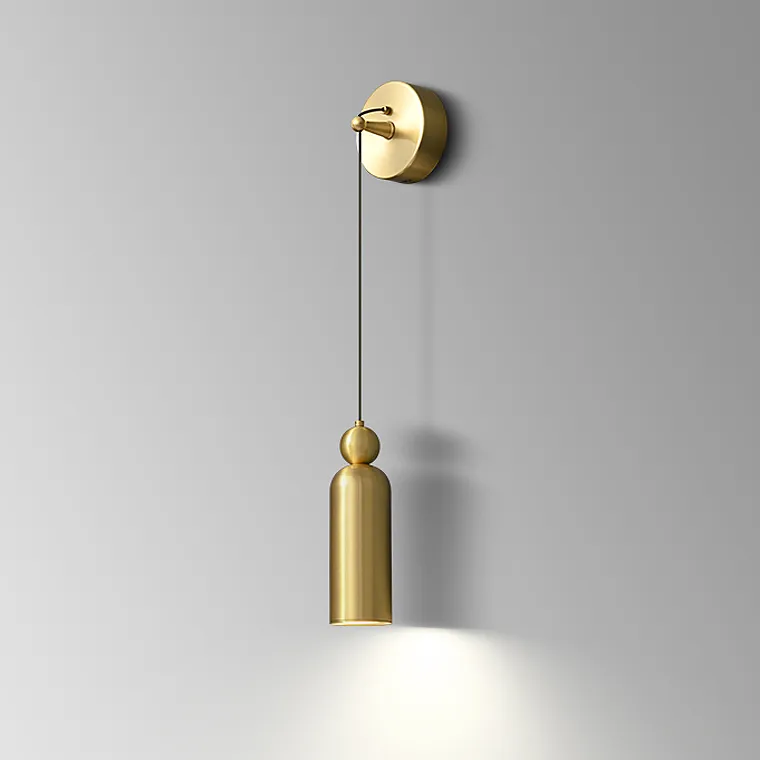 Серия настенных светодиодных светильников в виде комбинации скругленного цилиндра и шара из настоящей латуни