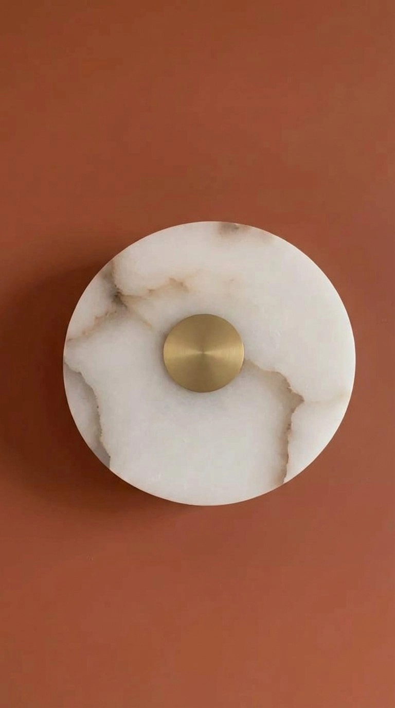 Настенный светодиодный светильник с круглым плафоном из мрамора и металлическим центром