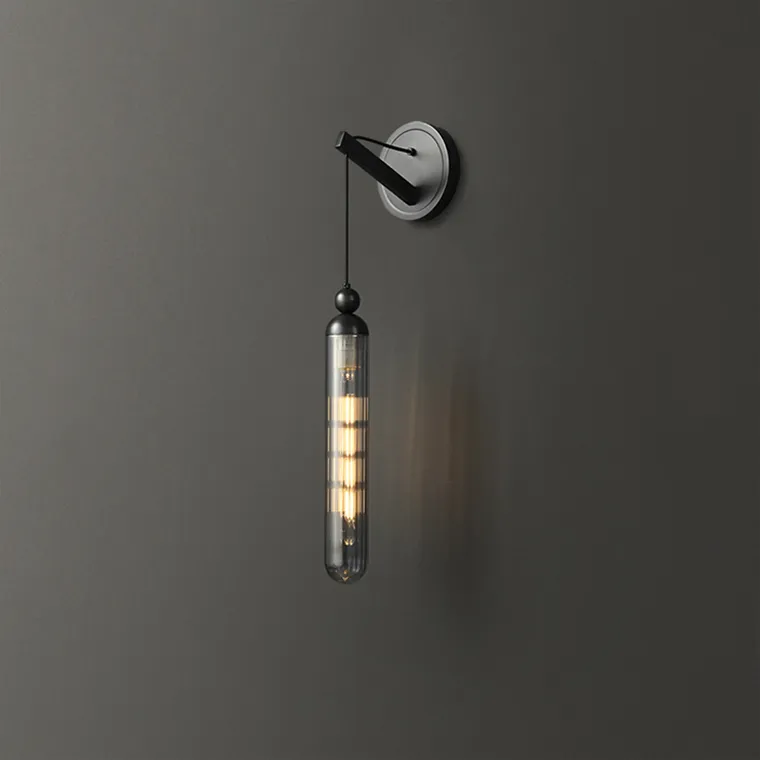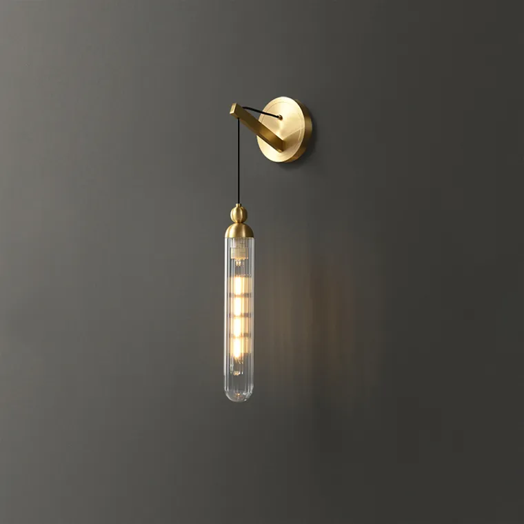 Серия настенных светильников с цилиндрическим рассеивателем из рельефного стекла в латунном корпусе