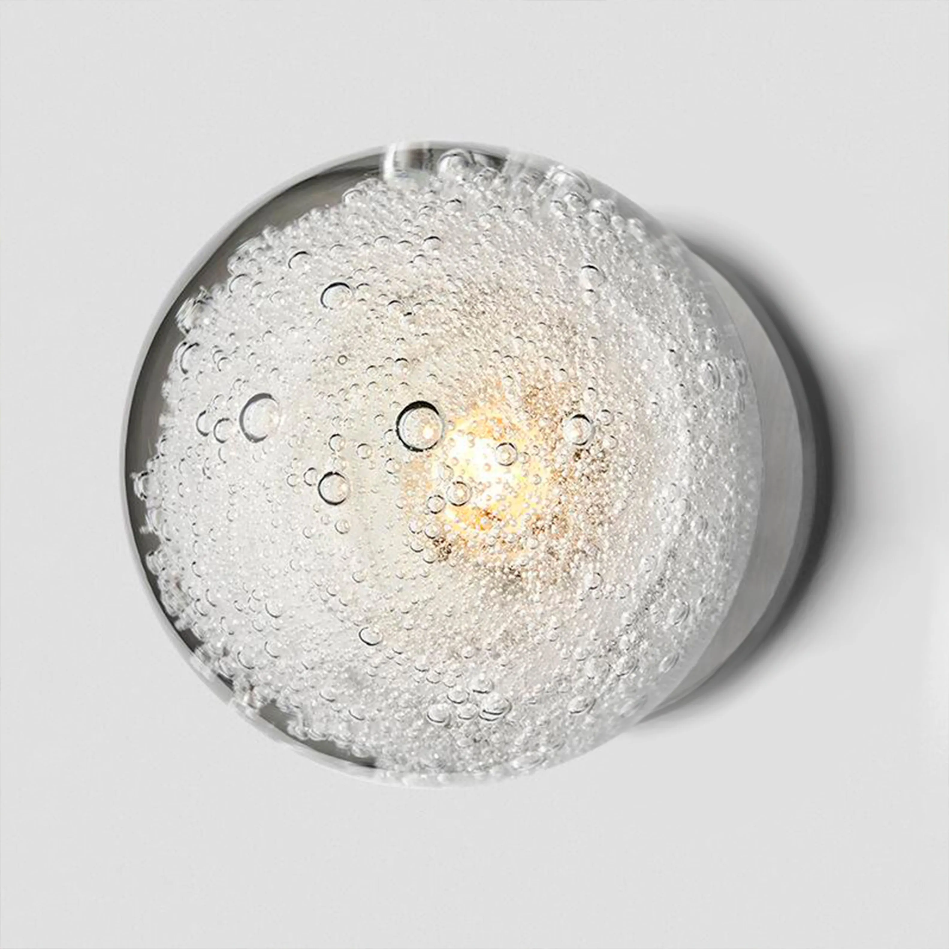 Особенностью серии LEROY ONE WALL является шарообразный рассеиватель из стекла ручной работы с эффектом воздушных пузырьков диаметром 12 см. Это не только добавляет бра уникальности и шарма, но и делает его идеальным выбором для современных интерьеров в стиле лофт, минимализм или индастриал.