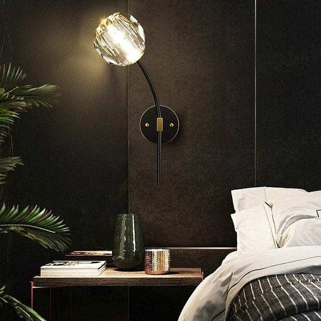 Особенностью серии LEROY ONE WALL является шарообразный рассеиватель из стекла ручной работы с эффектом воздушных пузырьков диаметром 12 см. Это не только добавляет бра уникальности и шарма, но и делает его идеальным выбором для современных интерьеров в стиле лофт, минимализм или индастриал.
