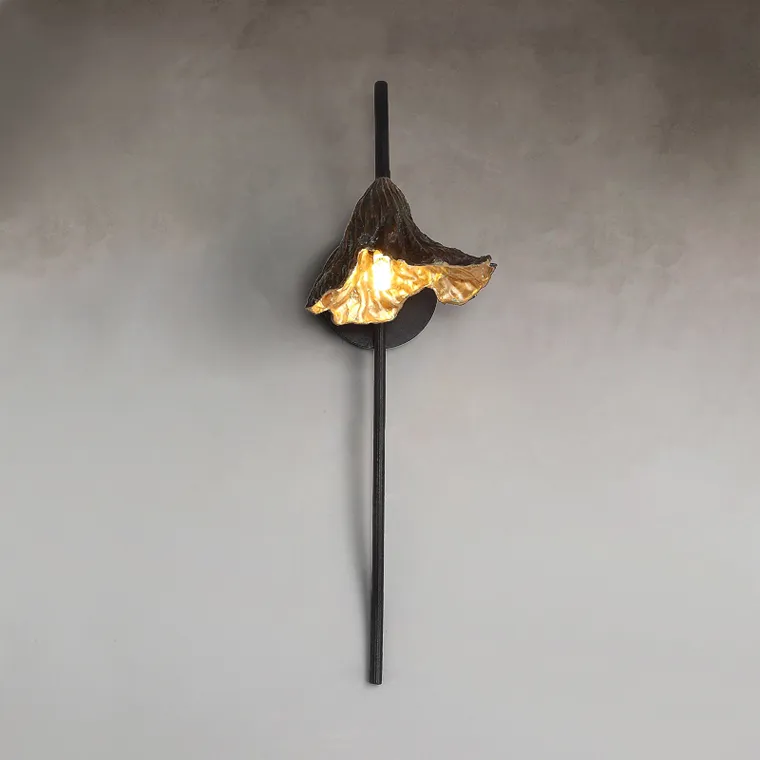Серия настенных светильников с плафоном в виде высушенного цветка с внутренней отделкой под золото
