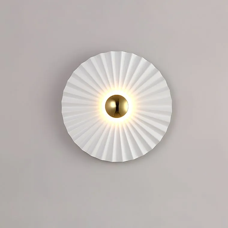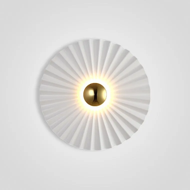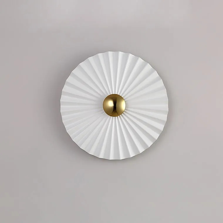 Настенный светодиодный светильник с белым дискообразным каркасом c латунным центром, стилизованным под цветок
