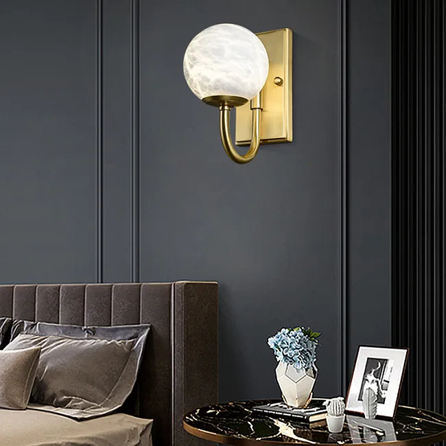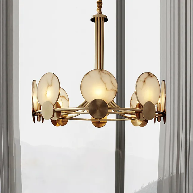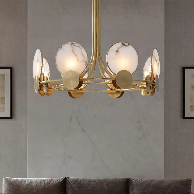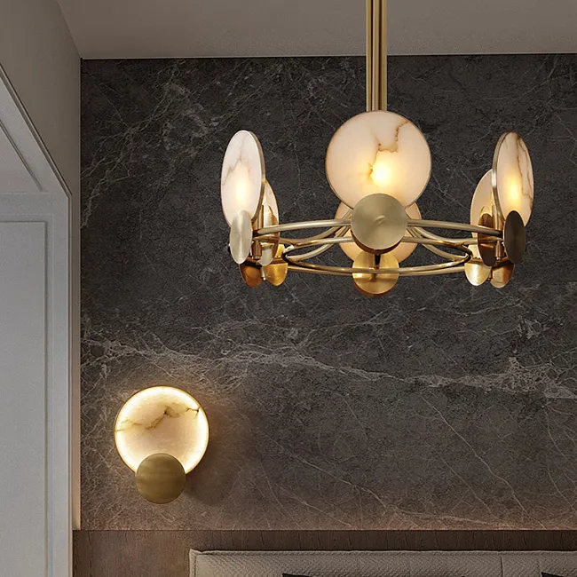 Настенный светильник с подвешенным рассеивателем из мрамора в форме диска