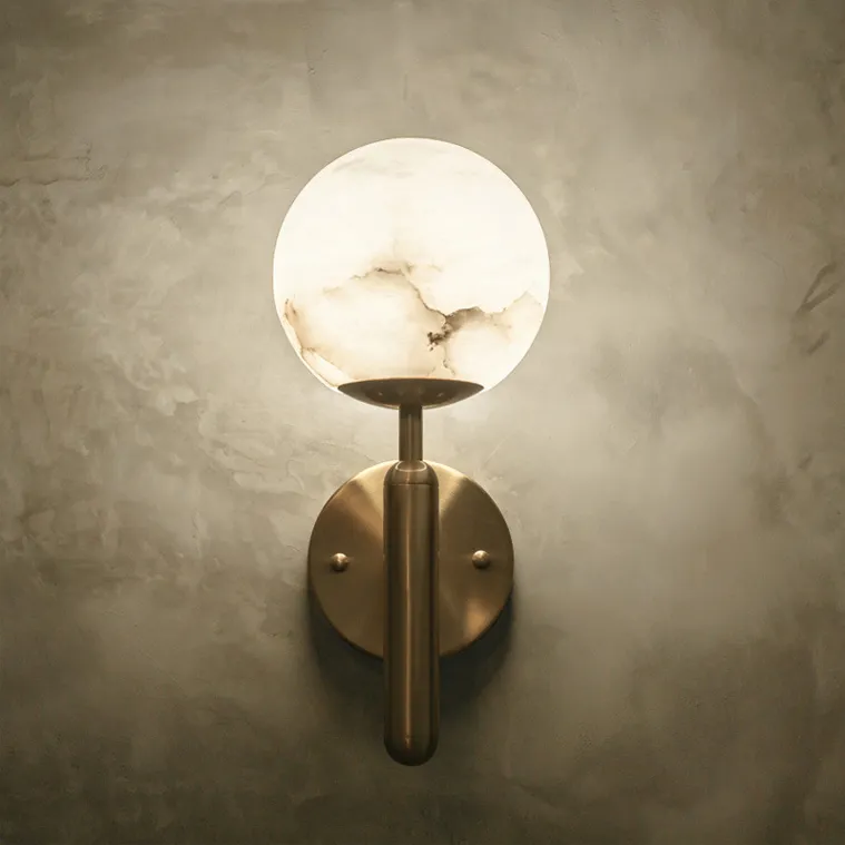 Настенный светильник с шарообразным плафоном из мрамора и металлическим креплением бронзового оттенка