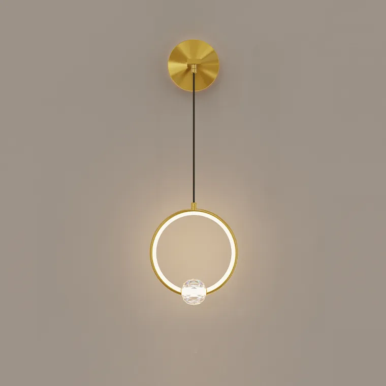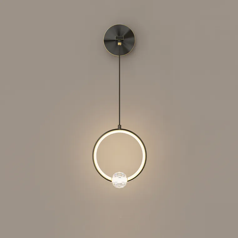 Настенный светильник с шарообразным хрустальным плафонот на металлическом кольце с внутренним LED-свечением