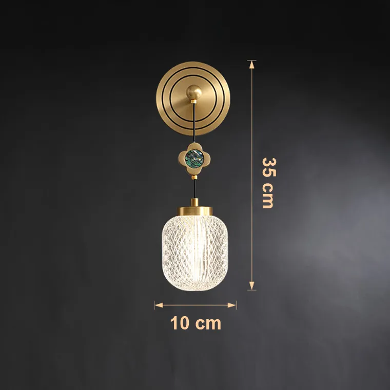 Настенный светильник с рельефным плафоном округлой формы на подвесе с декоративным цветком с перламутровой сердцевиной