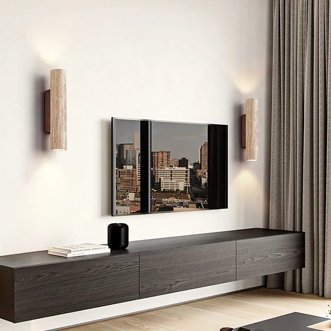 Бра LUBBE BLACK - это элегантный светильник, который привнесет природные и натуральные элементы в ваш интерьер. Он имеет цилиндрический корпус из вулканического камня, добавляющий текстуру и уникальность в дизайн. Крепление выполнено из дерева в прямоугольной форме, что создает интересный контраст с каменным корпусом.
