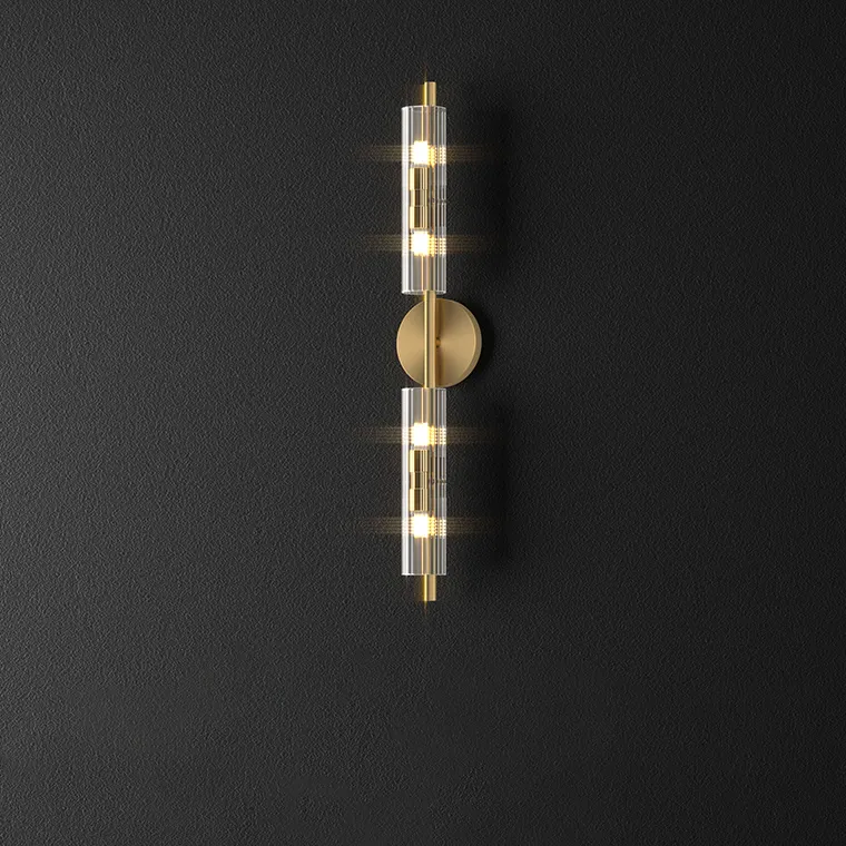 Представляем Вашему вниманию новый настенный светильник LUCINA B WALL. Этот прекрасный светильник выполнен из высококачественной латуни H65 и имеет два вытянутых многогранных плафона цилиндрической формы, выполненных из прозрачного стекла. Светильник оснащен 4 лампами типа G9.