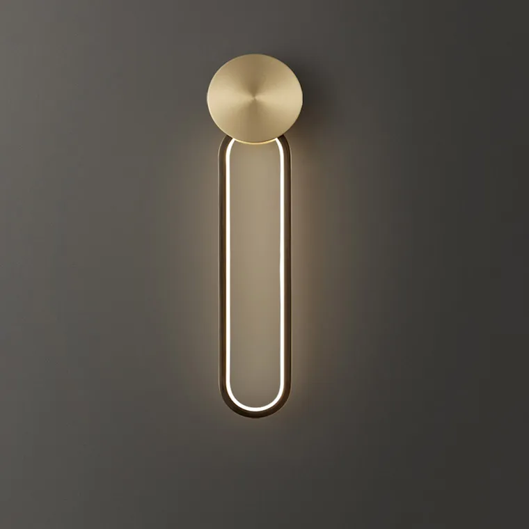 Серия настенных светильников с латунными дисками на закольцованном корпусе с внутренней LED-подсветкой