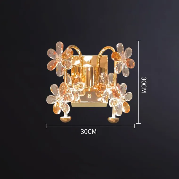 Настенный светодиодный светильник с хрустальными рассеивателями в виде цветов на изогнутых рожках